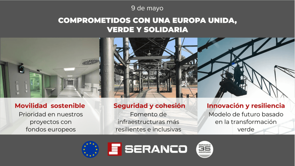 Este 9 de mayo se conmemora el 75º aniversario de la Declaración Schuman, el acto fundacional de lo que hoy conocemos como la Unión Europea. Desde SERANCO queremos poner en valor la importancia de la cooperación entre países y el impacto positivo de las inversiones europeas en el desarrollo de infraestructuras que mejoran la calidad de vida de las personas.